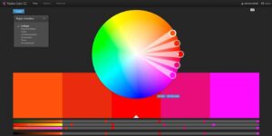 Hay varias herramientas para diseñar tu paleta de colores. Aquí te dejo una guía de herramientas gratuitas donde encontrarás algunas sorprendentes. Una de las mejores es sin duda la Rueda de Colores de Adobe, una magnífica aplicación también gratuita que te permite buscar y combinar colores, además de conocer tendencias y descargar las paletas cromáticas de imágenes de referencia. Te recomiendo tenerla en tu carpeta de herramientas, te va a resultar muy útil.